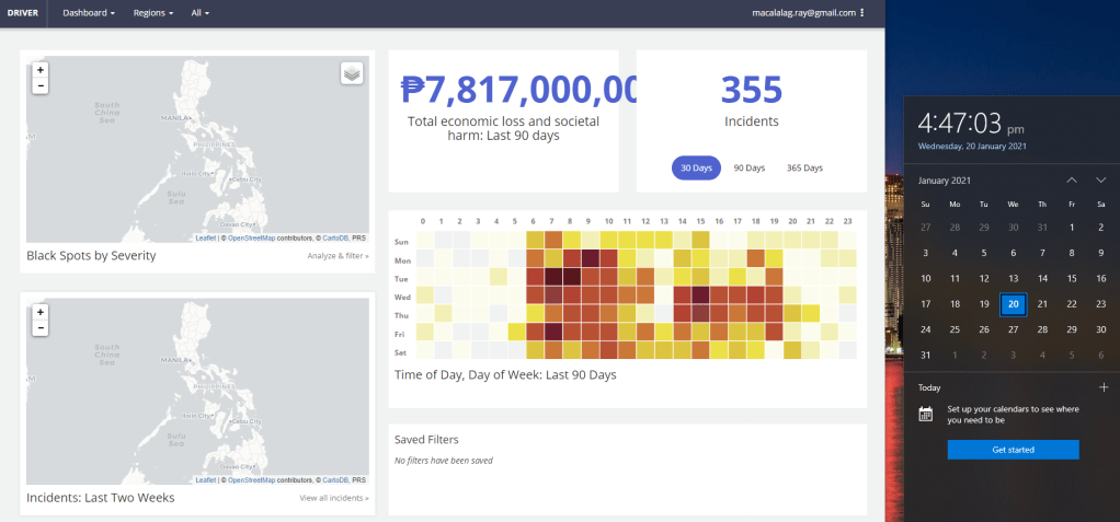 Through the Data for Road Incident Visualization, Evaluation and Reporting System or DRIVER System, road crashes in the Philippines have been recorded for increasing awareness and providing relevant primary information for road safety programs investment decision-making. Although the system has been up and running for a long period of time, it can still be possible that not all road crashes are found on the system itself. Looking at it, most if not the majority of road crashes in the system only included that of Metro Manila, Central Luzon and Calabarzon. The same system noted the economic losses so far and based on the premise, the losses could be higher.