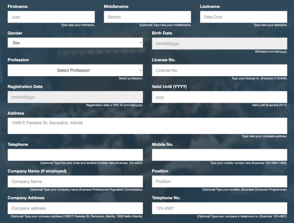 Important Note: You need to make sure all the information you placed upon registering matches the information in your Professional Identification Card (PIC). This includes your full name, gender, birth date, profession, license number, registration date, and year of validity of license. The registration should look like this:
